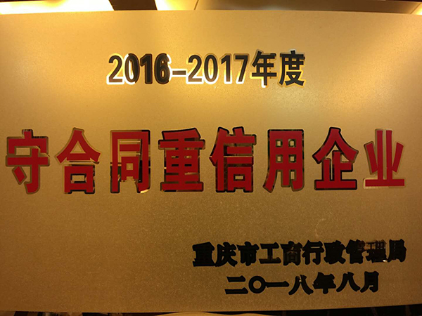 近日,公司收到了重慶市工商行政管理局頒發的“守合同重信用”企業公示證明書和“守合同重信用企業...